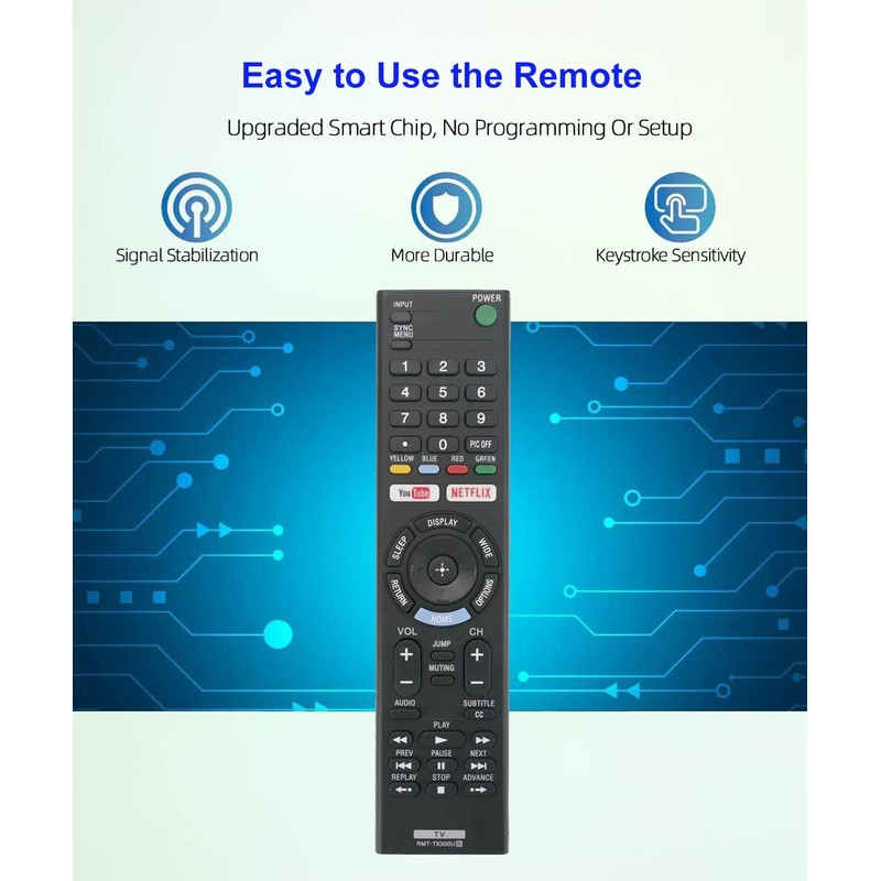 - 【Note】 Pre-Programmed only for Sony TV remote control, can’t be Programmed to any other brand devices again; It’s universal for Sony TV, but if your TV doesn't have the feature, buttons like NETFLIX won't work; Batteries are NOT included; IR remote control NOT Voice.
