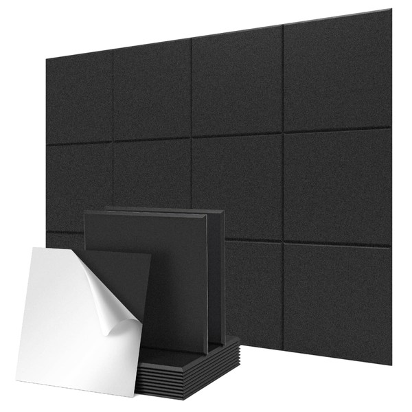 JISUO 12 Pack Acoustic Panels Self Adhesive Sound Proof Foam, 12" x 12" x 0.4" High Density Soundproof Wall Panels, Square Acoustic Tiles for Home Office Studio Theater Classroom, Black