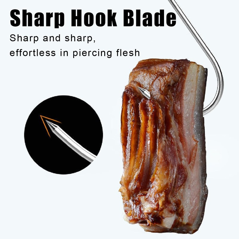 - Professional design: one side of the hook is very sharp, it can be easily inserted into the meat and hanging the meat is effortless. Another end is smooth, the round edges will not hurt you.
