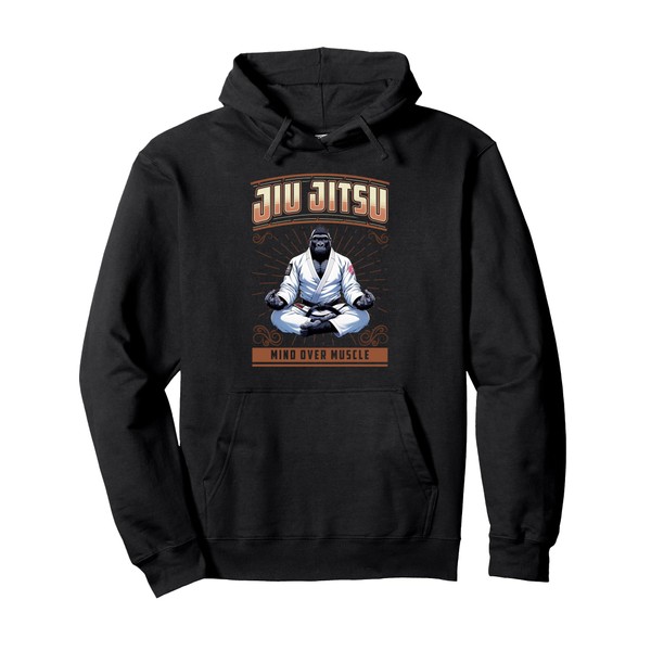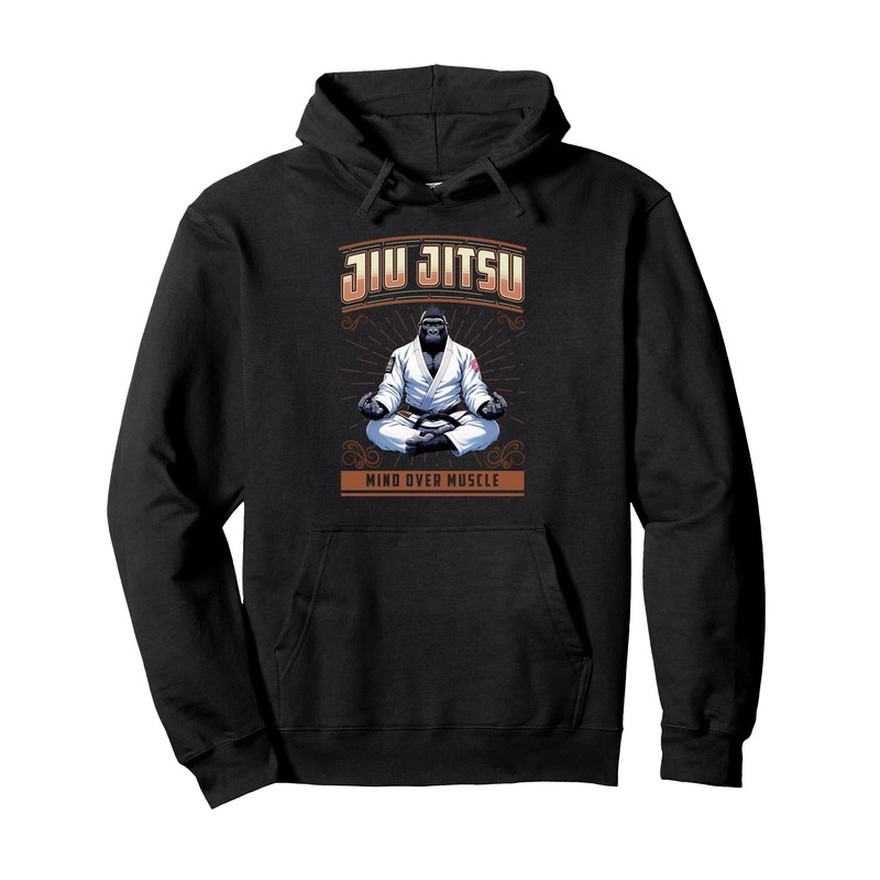 Jiu Jitsu Mind Over Muscle Big Grappling BJJ Gorilla Pullover Hoodie, black
