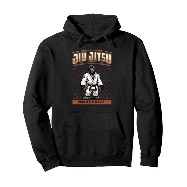 Jiu Jitsu Mind Over Muscle - Cute Grappling BJJ Gorilla Pullover Hoodie, black