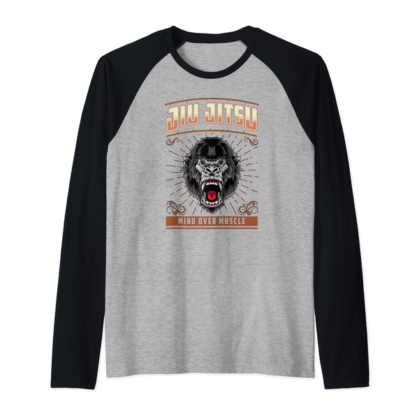 Jiu Jitsu Mind Over Muscle - Grappling BJJ Angry Gorilla Raglan, black