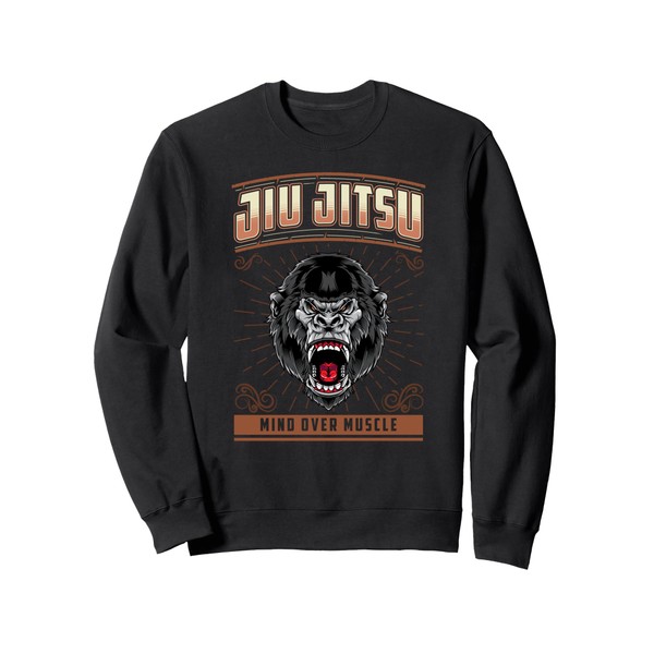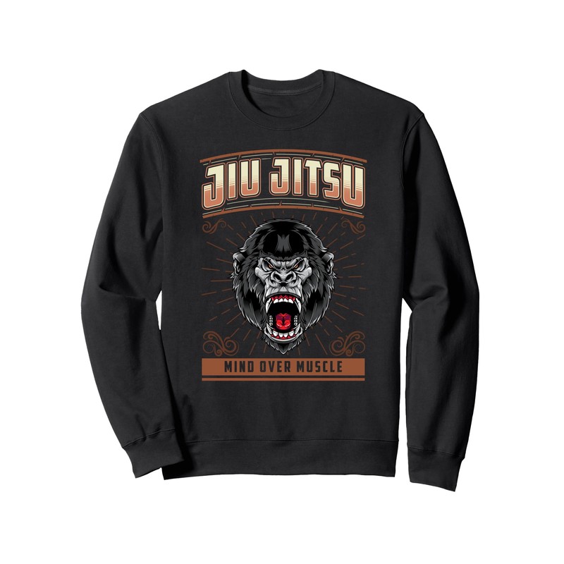 Jiu Jitsu Mind Over Muscle Grappling BJJ Angry Gorilla Sweatshirt, black