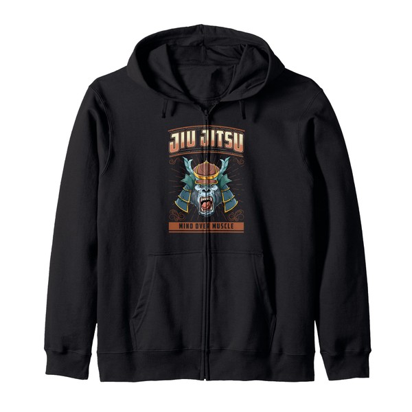 Jiu Jitsu Mind Over Muscle - Grappling BJJ Samurai Gorilla Hooded Jacket, black