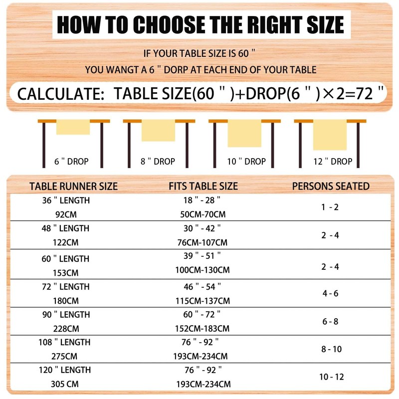 - Size:13×108inch(33×275cm),appropriate for a table that can seat 8-10 peoples