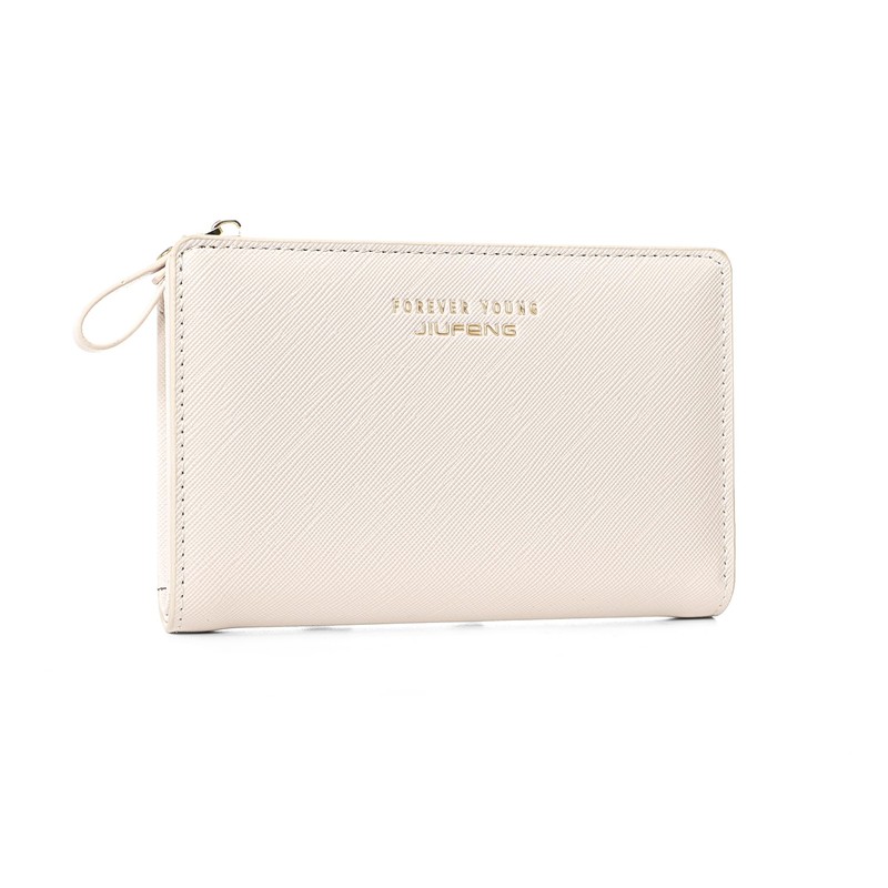 JIUFENG Women Zipper Wallet RFID Blocking Multipurpose Coin Pockets Credit Card Holder Short Wallets, beige, Casual