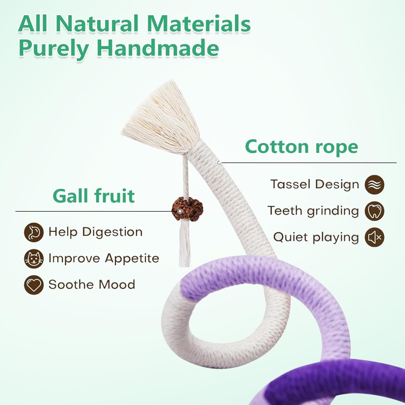 - 【Essential Dental Care & Health Promoter】Fördern Sie einen gesunden Mund mit diesem Doppelzweck-Katzen-Zahnspielzeug und Kätzchen-Zahnspielzeug. Die faserige Textur des natürlichen Baumwoll-Katzenspielzeugs schrubbt auf natürliche Weise die Zähne, wirkt als Zahngesundheitsseilspielzeug, um Plaque bei Katzen zu reduzieren und als Zahnfleisch-Massagespielzeug für die Zahnsteinkontrolle zu dienen. Es bietet eine effektive Schmerzlinderung beim Zahnen für 12 Wochen alte Kätzchen, was es zu einem entscheidenden Kauspielzeug für Kätzchen macht. Neben dem Zahnen fördert es lebenslange Kaugewohnheiten, die für die Mundhygiene bei allen Katzen von entscheidender Bedeutung sind, und fungiert als wichtiges Katzenanreicherungsspielzeug, das sich auf Wellness konzentriert.