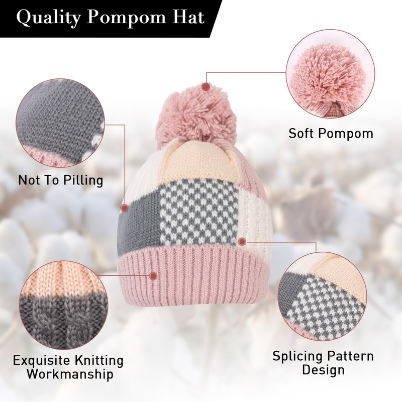 - 【Splicing Pattern Design】Our bobble hats are designed by irregular splicing in various colors, which is both fashionable and elegant. There is a fluffy ball on the top of the hat, which is the perfect choice to go with any clothes you wear. Besides, it can slim your face and make you look more beautiful.