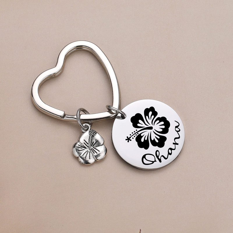 JIUSHUN Ohana Gift Hibiscus Gift Hibiscus Keychain Hibiscus Jewelry Hibiscus Flower Keychain Family Jewelry Ohana Flower Gift Ohana Flower Jewelry adoption Day Gift Ohana Keychain