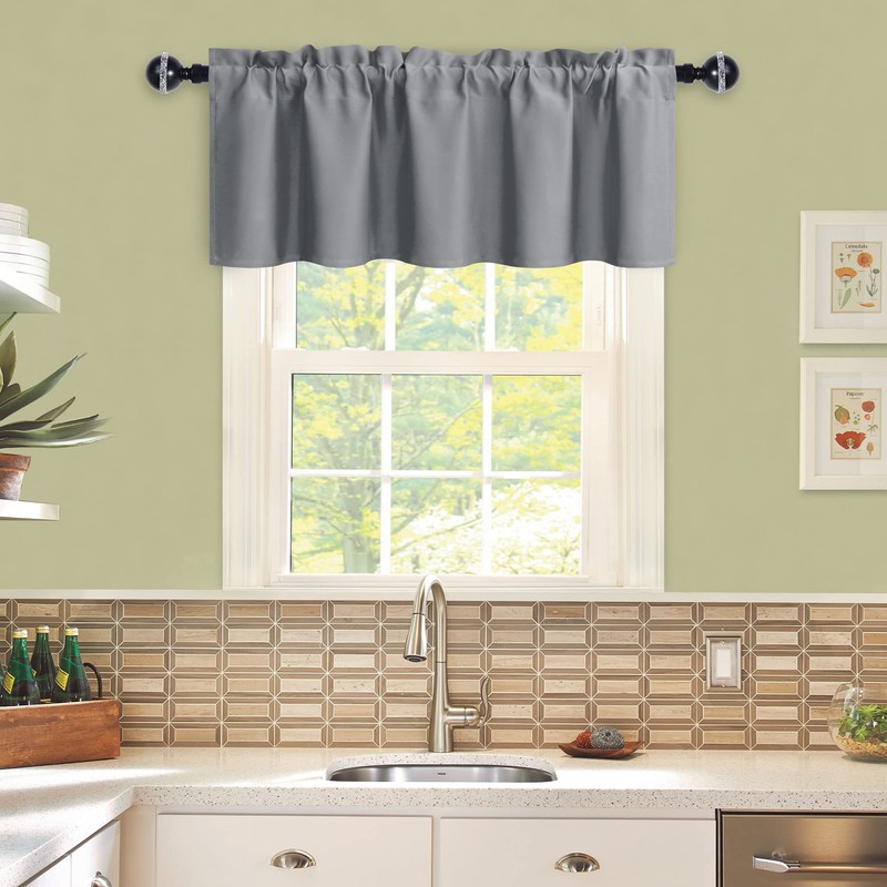 JIUZHEN Blackout Valance Short Curtains for Kitchen - Rod Pocket Valances Solid Curtains for Small Window Living Room Bedroom Darkening Bathroom, 42 x 18 Inch Length,Grey,1 Panel
