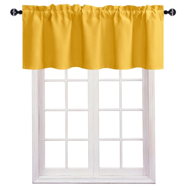 JIUZHEN Yellow Blackout Valance Short Curtains for Kitchen - Rod Pocket Valances Solid Curtains for Small Window Living Room Bedroom Darkening Bathroom, 60 x 18 Inch Length,1 Panel