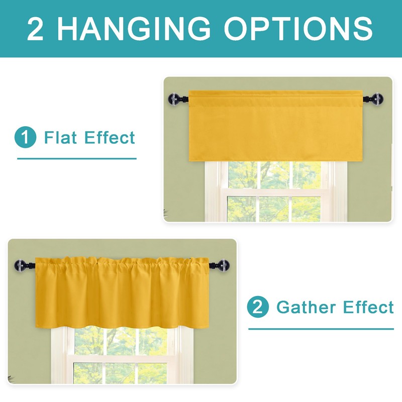 - Multiple use place: These sun blocking valances can be matched with any other curtain. Suitable for kitchen, living room, bedroom, basement, etc. Add elegance to home decoration.