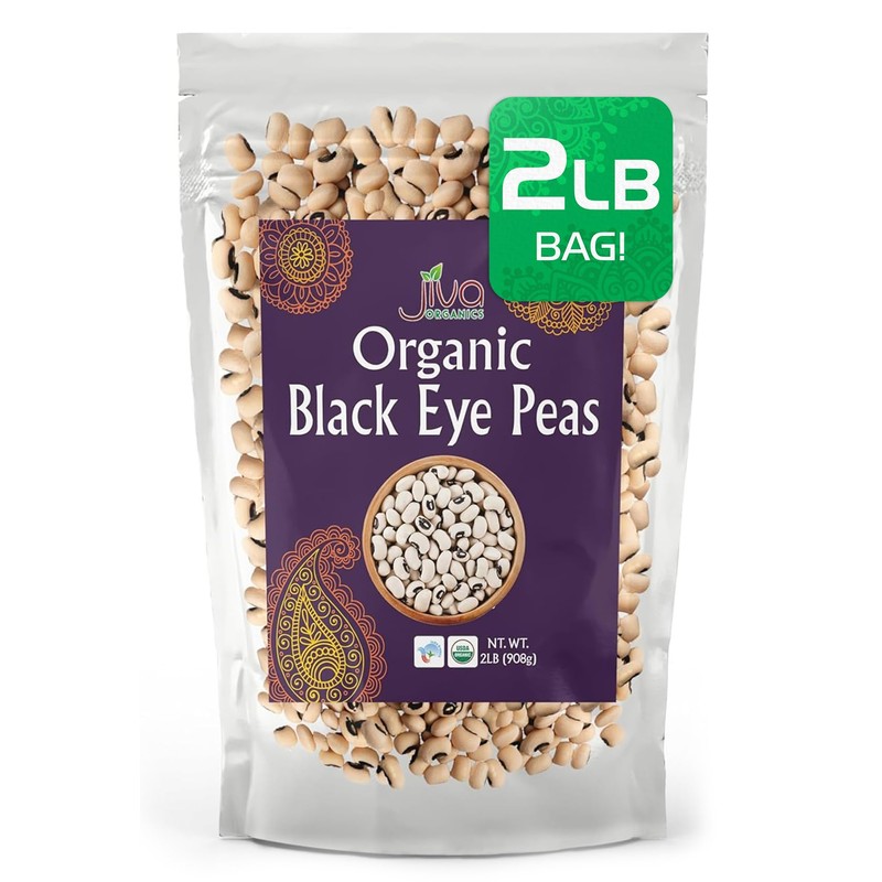 Jiva Organics Organic Black Eye Peas 2 Pound Bag - Cowpeas, Non-GMO, Natural