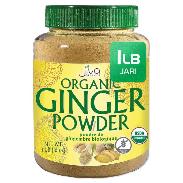 Jiva Organics Organic Ginger Root Powder 1 LB Jar - Gluten Free, Non-GMO - for Cooking, Baking, Tea & More - Bulk Ginger Ground Dry