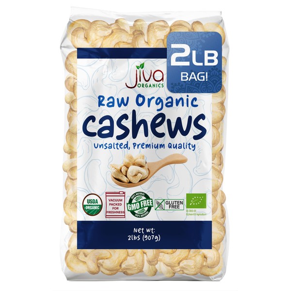 Jiva Organics Raw Organic Cashews (Whole) 2 Pound Bag