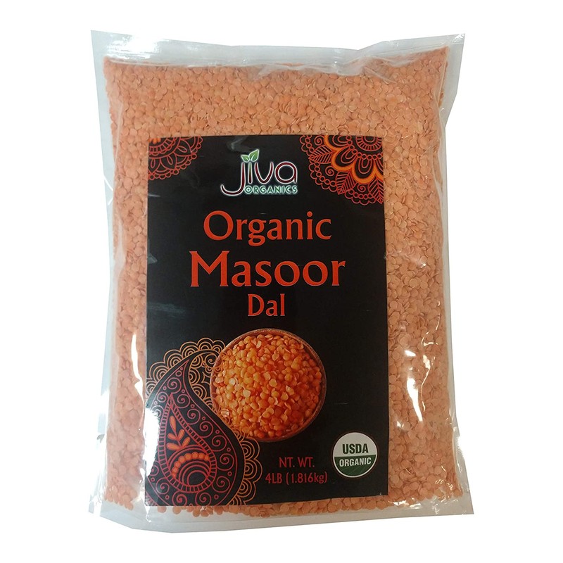 Jiva USDA Organic Masoor Dal - Split Red Lentils - 4 Lbs (64oz)