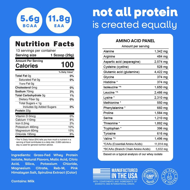 • 22g PURE WHEY ISOLATE, ZERO BLOAT - Feel the performance, not the punishment. Our premium, grass-fed whey isolate is so clean it's gentle on your stomach. Build lean muscle without the heavy, weighed-down feeling.