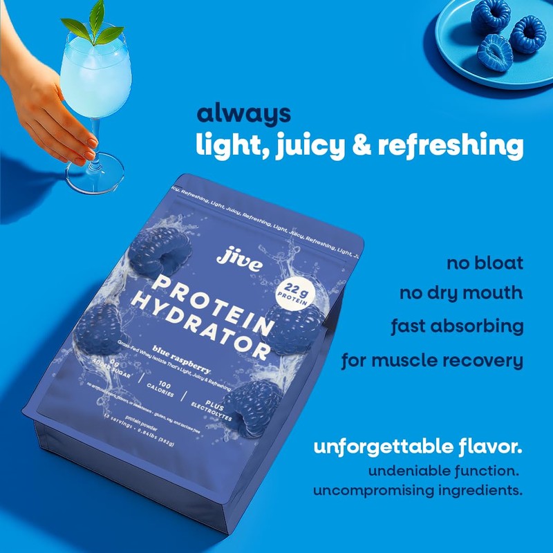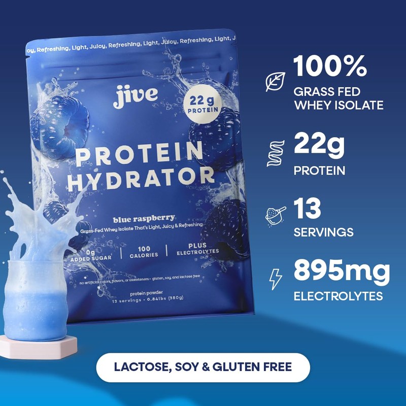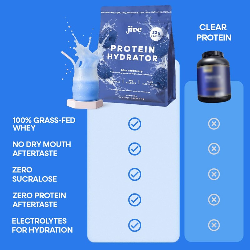 Jive Clear Protein Powder - 22g Grass-Fed Whey Isolate, 13 Servings - Blue Raspberry - 895mg of Electrolytes - Zero Added Sugar - Clear Drink Protein Water & Juice