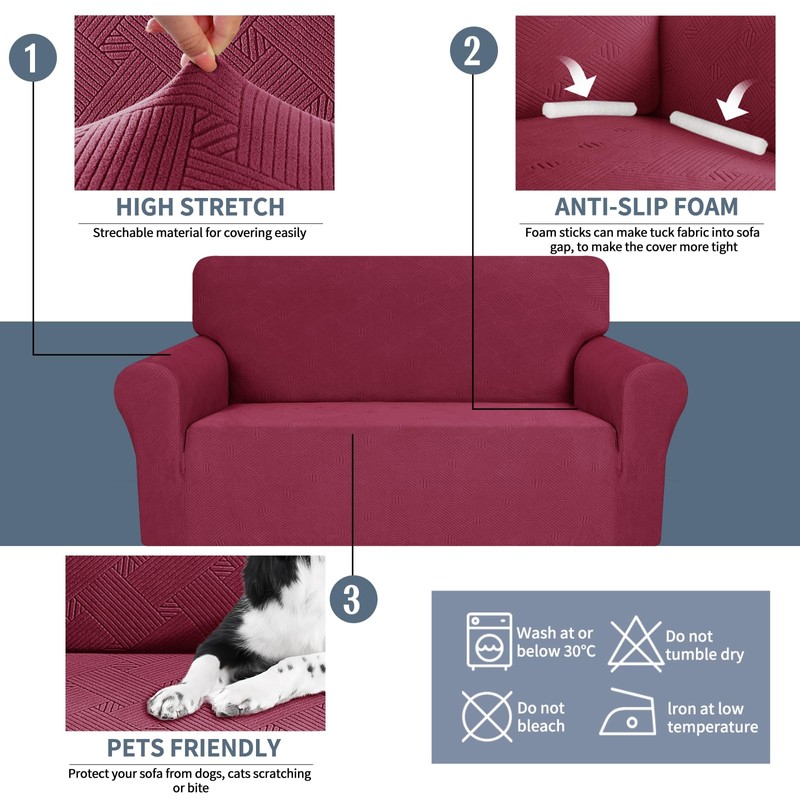 With new design jacquard pattern, the soft sofa slipcovers can fit your sofa couch perfectly and become a centerpiece in your living room. Featuring with elastic bands and foam sticks, fitted sofa covers will not easily move or shift after using