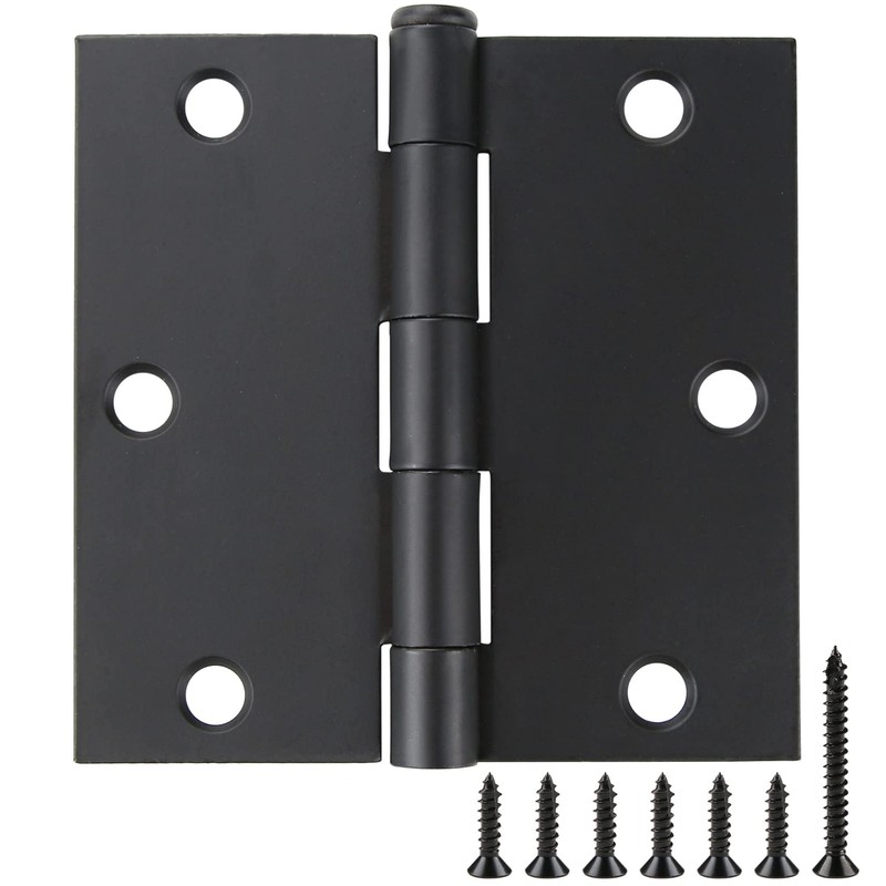 - Black square hinges for Doors Interior Includes 180 free screws for quick and easy installation.Black door hinges square 3.5 inch can be rotated 270 degrees.The extra long 18 screws will come in handy specially when replacing existing hardware using the same hole pattern.