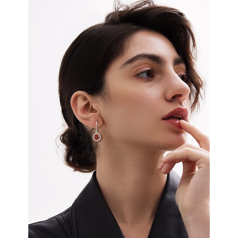 JIWOY 925 Sterling Silver Dangle Drop Earring with Round Leverback Created Ruby Jewelry for Her