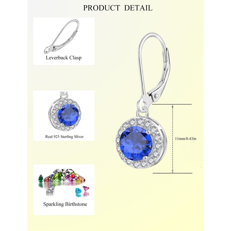 JIWOY 925 Sterling Silver Dangle Drop Earring with Round Leverback Created Sapphire Jewelry for Her