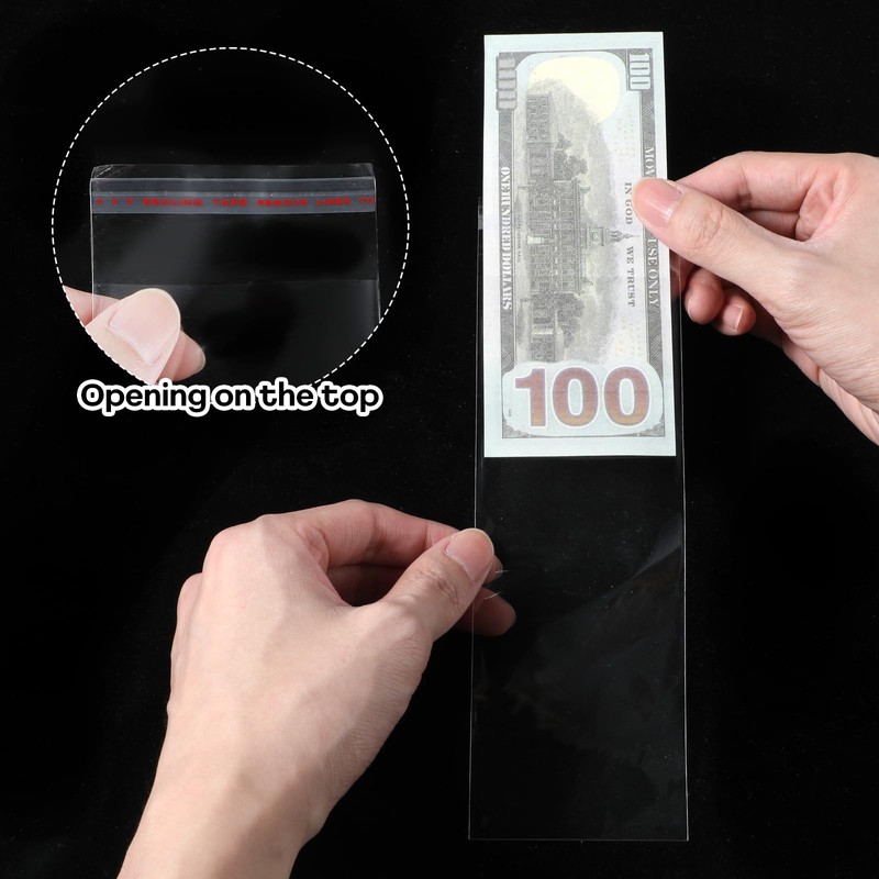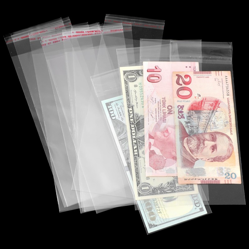 - 【Secure Self-Adhesive Sealing】The self-adhesive sealing band on our currency sleeves prevents your collectibles from slipping out and getting broken. These clear cash envelopes are designed to keep your items secure and intact.