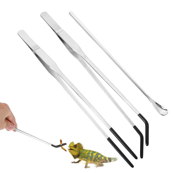 JIYIN 3 Pcs Reptile Feeding Tweezers, Long Aquarium Tweezers Stainless Steel Feeding Tongs with Rubber Tipped Aquariums Tools Feeder for Fish Lizard Gecko Snake Spider Bearded Dragon Lovers