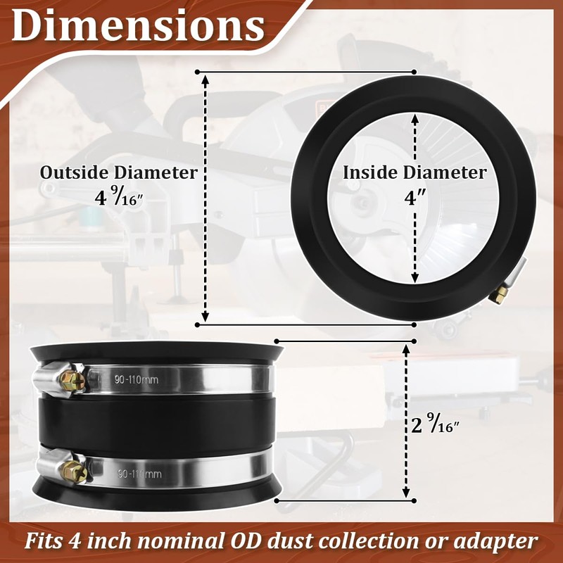 - Flex Cuff Function: Provide perfect airtightness between two 4 inch OD ports, including dust collection equipment ports, pipes or fittings.