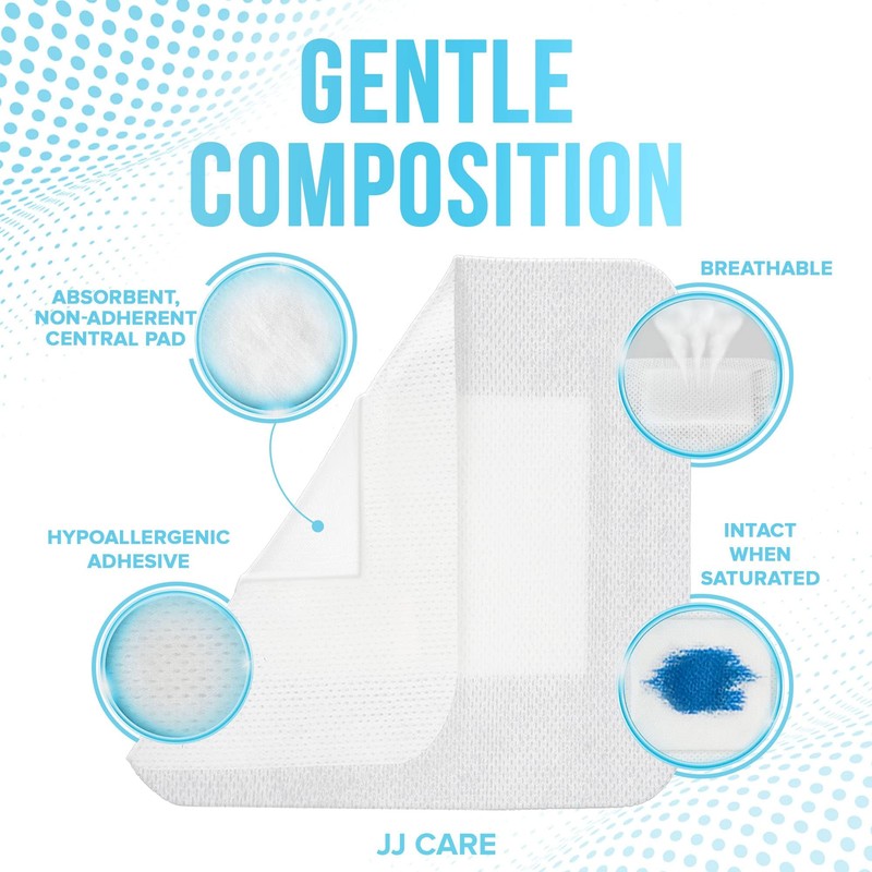 - ✅ MULTIFUNCTIONAL ISLAND BANDAGES - These JJ CARE bordered gauze pads are ideal for lightly-draining wounds. It is also used for pressure ulcers or bedsores, leg and foot ulcers, traumatic wounds, surgical wounds, blisters, skin tears, and burns (first and second degree). These wound bandages adhesive large size provide a moist healing environment for wounds and help reduce the possibility of developing scars.
