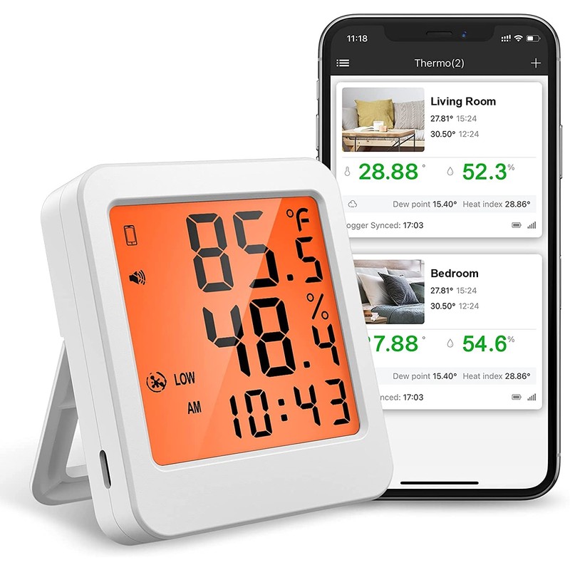 • Equipped with high precision sensor: The smart thermometer/hygrometer uses a MEMS digital temperature and humidity sensor. 3.2 inch orange backlit LCD screen allows you to check data at 0.5 degrees Celsius and 5% humidity in real time about every second. High performance, high reliability temperature and hygrometer