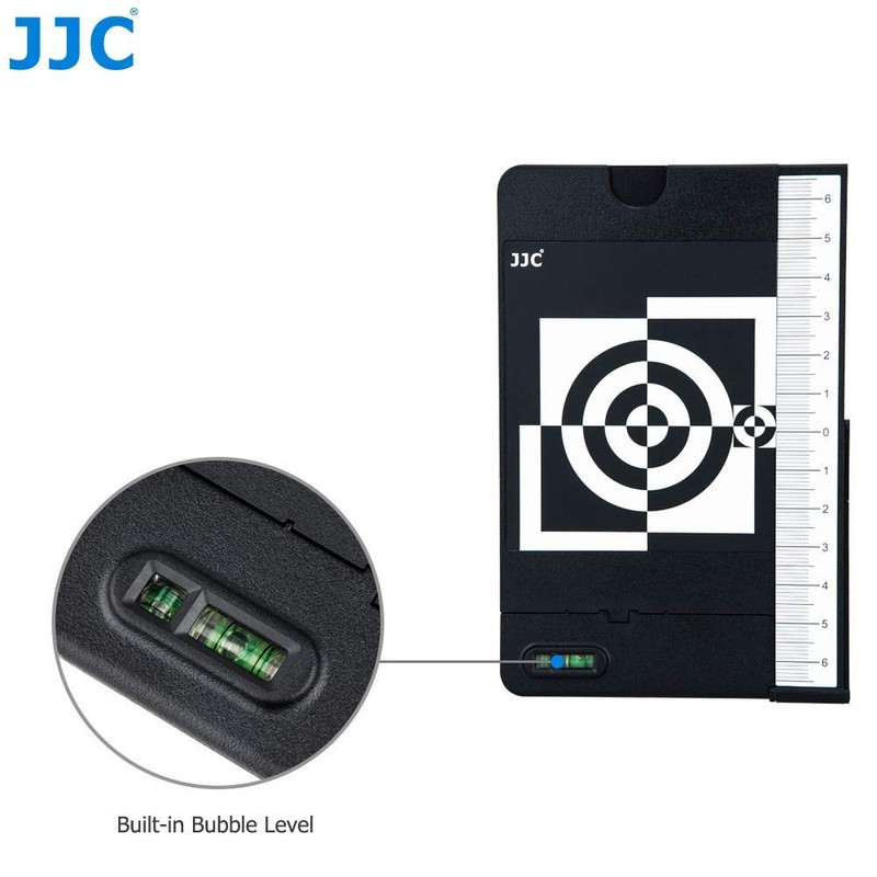 The JJC kit consists of 1 x autofocus calibration aid and 1 x colour balance card.