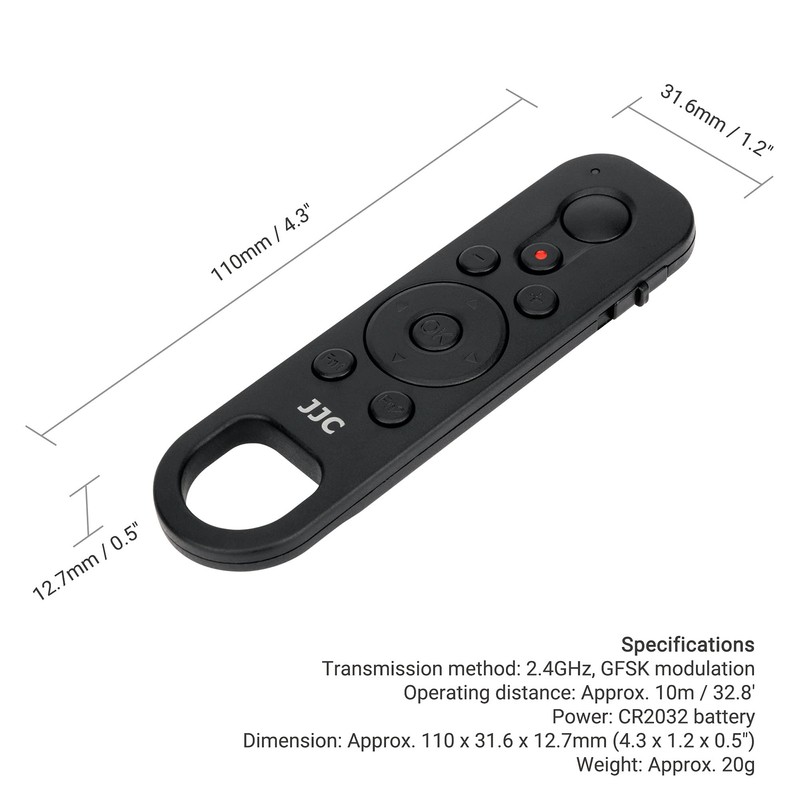 Die drahtlose Fernbedienung von JJC ist mit der Bluetooth Low Energy-Technologie kompatibel, die speziell für Nikon Z f, Z5, Z6 II, Z7 II, Z fc, Z 30, Z 50, COOLPIX P950, A1000, B600 und P1000 entwickelt wurde. Ersetzt die Nikon ML-L7 Fernbedienung.