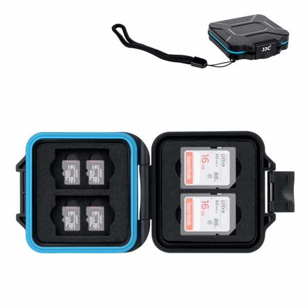 JJC Lightweight Thin Memory Card Case, SD Card Case, Micro SD Card Case, 4 SD/SDHC/SDXC Cards + 8 Micro SD/TF/MSD Cards, 16.4mm Thickness, Pressure, Shockproof, Waterproof, Dustproof, Portable,