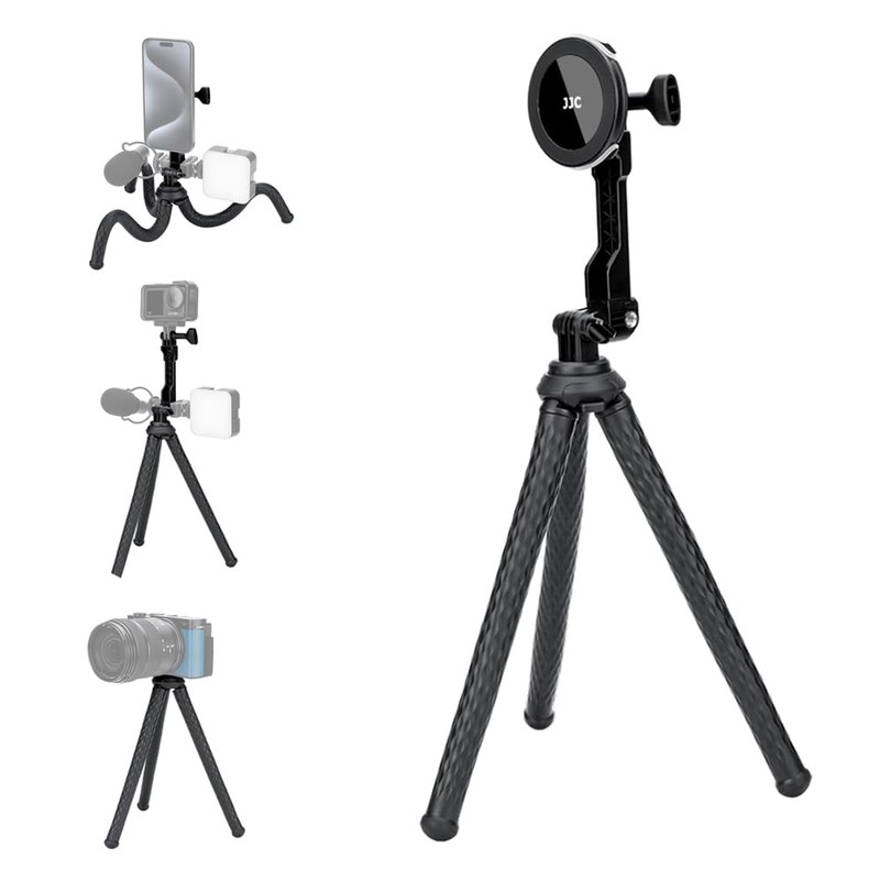 JJC Magnetic Flexible Tripod for Smartphones Action Camera & Compact Mirrorless Camera - Portable & Bendable Octopus Tripod for Vlogging Live Streaming Creator Film-making
