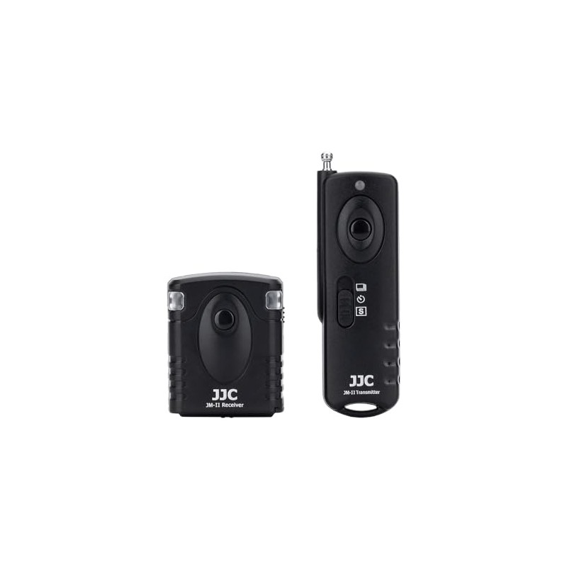 The JJC JM-II Series Wireless Trigger is designed for most DSLR and SLR cameras that have a remote socket on the camera body. The system operates at a frequency of 433 MHz and has 16 available channels. In addition, this wireless remote system allows the transmitter to trigger the receiver from 30 meters away. The JM-II receiver easily attaches to the cold shoe of a compatible camera and then simply connects the included JJC receiver cable to the camera's remote jack. The receiver is powered by one piece of CR-2 lithium battery, while the transmitter is powered by a piece of 23A battery. JM-II transmitter can trigger the camera shutter in five modes: single shooting, 5 seconds delay recording, 3 continuous shooting, unlimited continuous shooting and bulb shooting. The receiver features a 1/4"-20 tripod mount on the bottom, so you can even mount the receiver on a tripod. Most importantly, our JM-II transmitter is able to fire multiple receivers at the same time. The receiver itself with the connection cable can be used as a wired remote switch, then half press to focus, press fully to take a photo. All these features make it good for avoiding camera shake during long exposure shots.