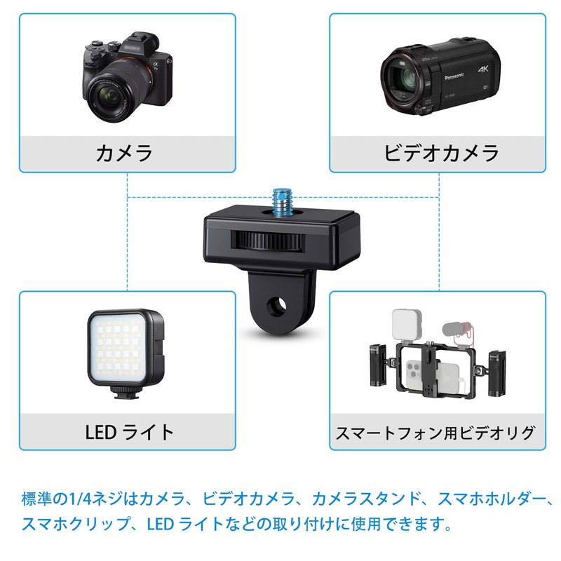 - 【⭐CAMERA MOUNT ADAPTER】The standard 1/4" screw on the top allows you to easily attach your action camera, digital camera, camcorder, video light and other compatible accessories