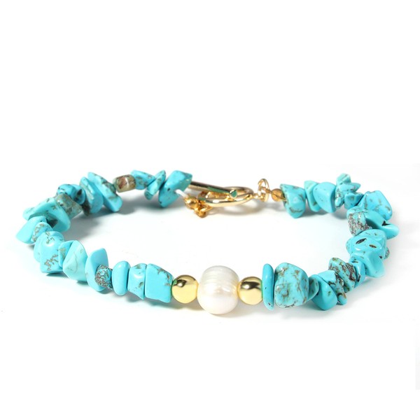 JJDreams Gemstone Bracelet Healing Stones Bracelet Women's Chip Bracelet Yoga Bracelet Amethyst with Pearl, Blue Turquoise
