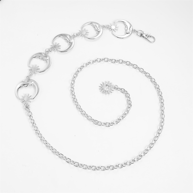 JJDreams Ladies Boho Silver Moon Waist Chain Chain Belt Waist Chain Y2K Belly Jewellery Belly Chain Waist Chain Belt Body Chain for Dress Jeans