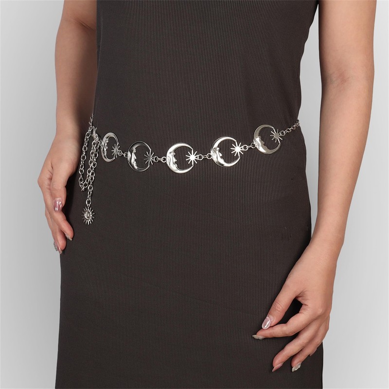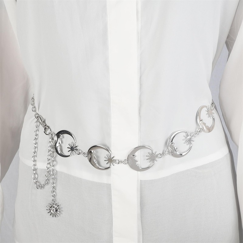 JJDreams Ladies Boho Silver Moon Waist Chain Chain Belt Waist Chain Y2K Belly Jewellery Belly Chain Waist Chain Belt Body Chain for Dress Jeans