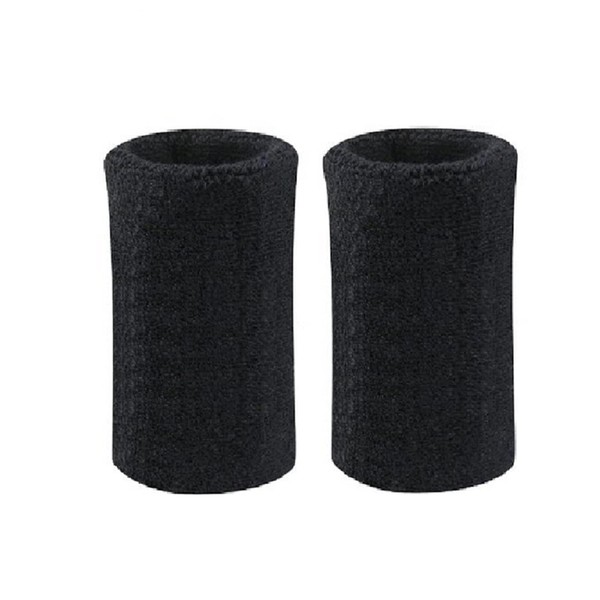 Jjoias 6 inch Sports Wristbands Wrist Sweatbands for Men & Women, Stretchy & Sweat Absorbing Cotton Terry, Perfect for Basketball, Football, Tennis, Soccer, Running & Working Out, 1 Pair (Black)