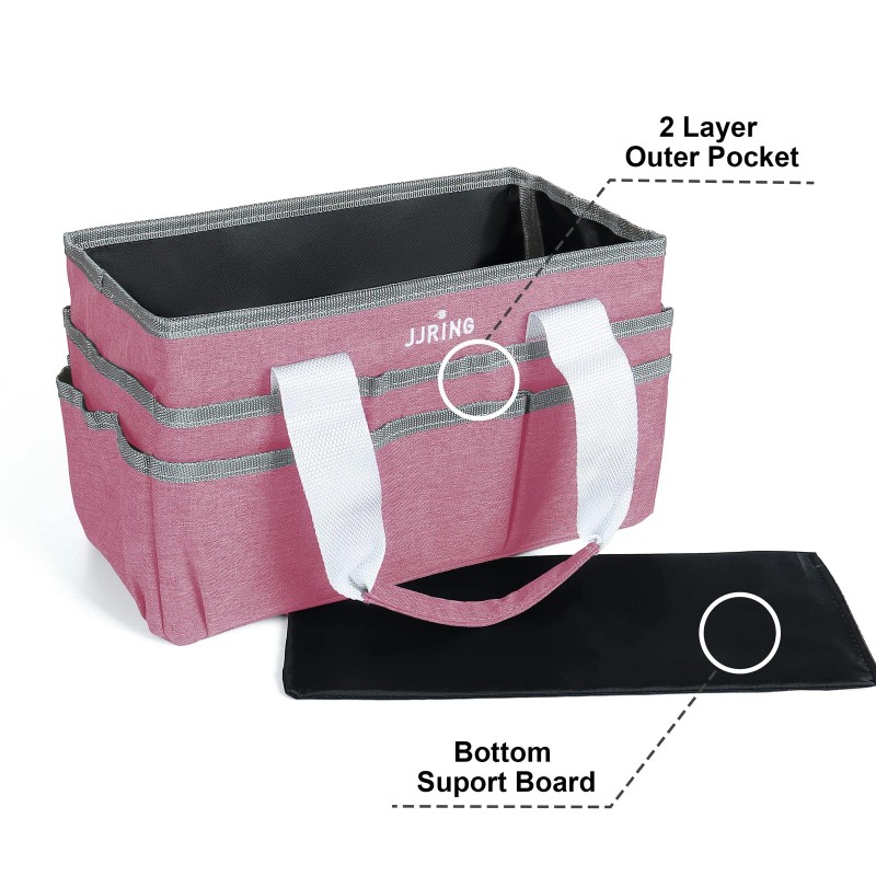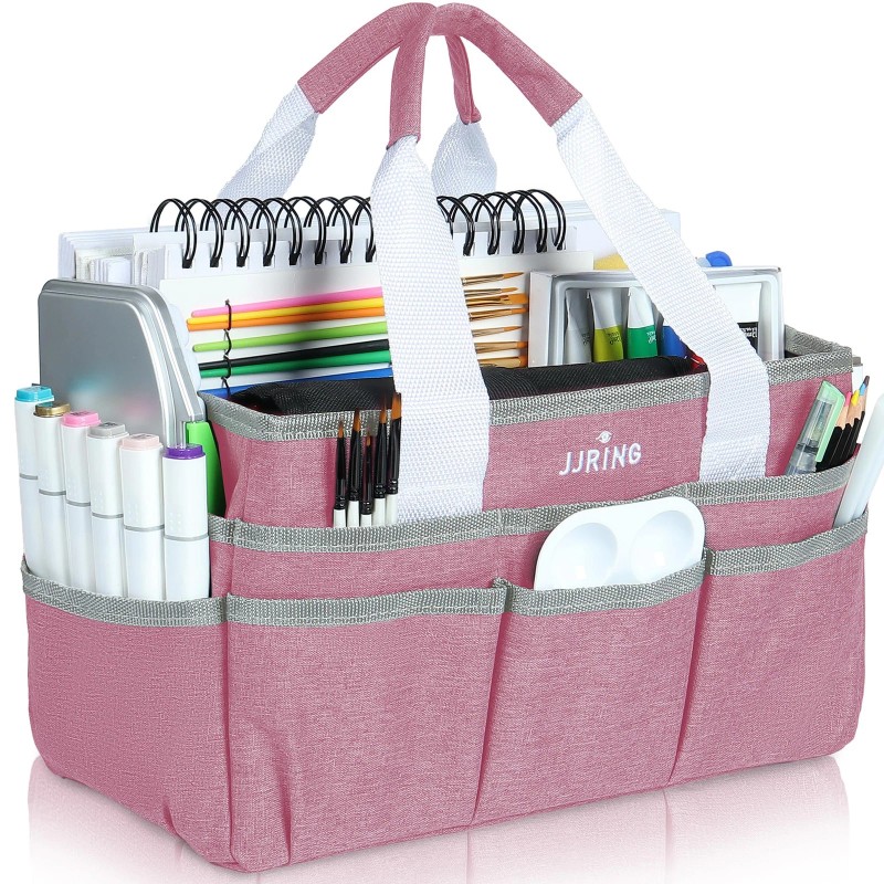 Jjring Craft Organizer Tote Bag, Art Storage Caddy with Multiple Pockets, Pink Sewing B