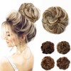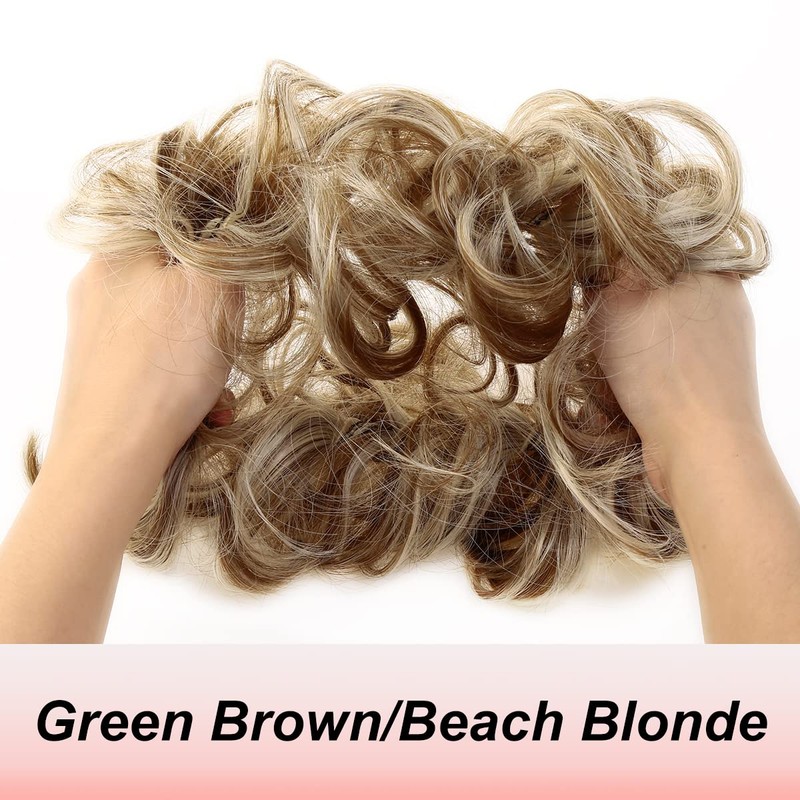 JJstar Messy Hair Bun Curly Wavy Hair Scrunchies Accessories Pieces for Women Girls Synthetic Hair Chignons (Green Brown/Beach Blonde)