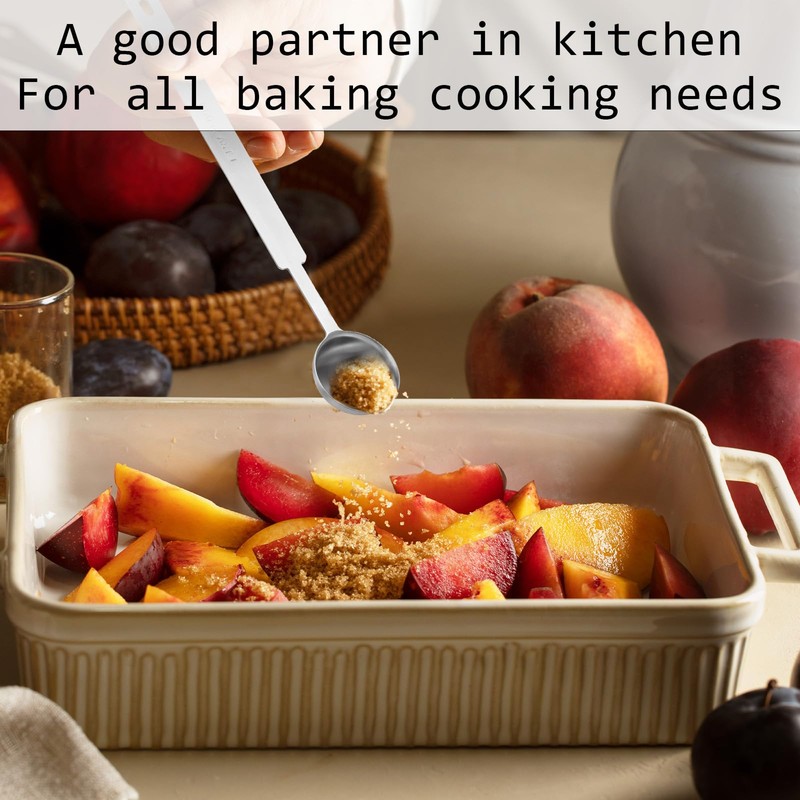 - 【Ergonomic Long Handles for Easy Handling】Each spoon features an extended handle that provides better grip and reach, making it easier to measure ingredients directly from containers or jars without spilling. Perfect for both right and left-handed users.