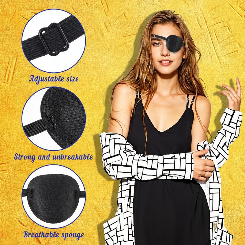 - Adjustable strap: the pirate eye patch can be adjusted in 40-57 cm. You can adjust the length according to your requirements. Each eye field measures about 7.5 x 7 cm, which is suitable for both adults and children, both for the left and right eye