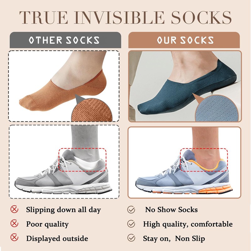 - Elevate Your Style With Invisible Elegance: Our low cut socks blend seamlessly, ideal for those seeking a no show look; the no show socks are no show hidden and thin design, which give a barefoot appearance with comfort of a sock, completely invisible after wearing shoes. Versatile with board, loafers, sneakers, leather shoes, boots, flats, pumps, high-heel shoes, canvas shoes, and tennis shoes, the no show socks for men are your shoe companion.