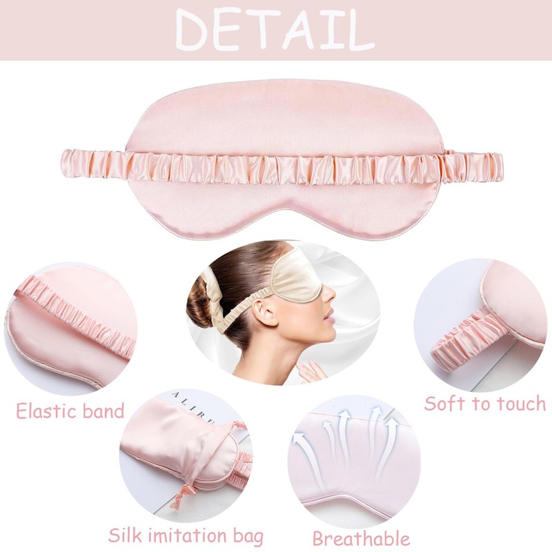 • Ultra Soft & Comfortable - Zero pressure sleep: The silk eye mask for sleeping a comfortable, elastic, painless strap design that won't move or fall off while you sleep. Also lightweight and fits perfectly to your face. This sleep mask is a natural sleep aid product for adults with insomnia or beauty sleep, with a reasonable thickness that won't press on their heads or stick to their eyes when lying down, even during daytime sleep.
