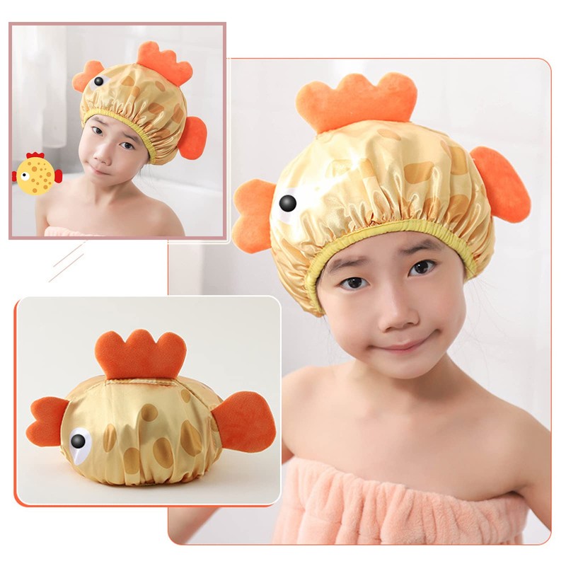 - 【Cute and fun】Cute and Funny Cartoon Shape, can attract your child's eye, let them like to wear a shower cap to take a shower. Definitely will make bath time so much more fun for your kids! Cute shower cap, fun for play. Full of love.