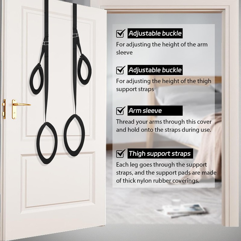 • The hanging doorway swings kit supports 360-degree rotation, and the sturdy nylon belt easily holds the arms and legs in place.