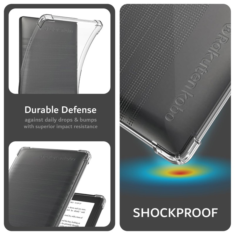 JKase Clear TPU Compatible with Kobo Clara HD Case (6") 2018, Shockproof Slim Lightweight Soft Silicone Grip Flexible Back Cover Transparent